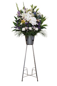 お世話になった方への感謝の気持ちを、みずみずしい生花に託して。ご親族・ご友人から、ご町内関係・会社関係の方まで、どなたでもお供えいただけるスタンダードなお供物です。※生花は季節・ご葬儀の宗旨宗派により写真と異なる場合があります。